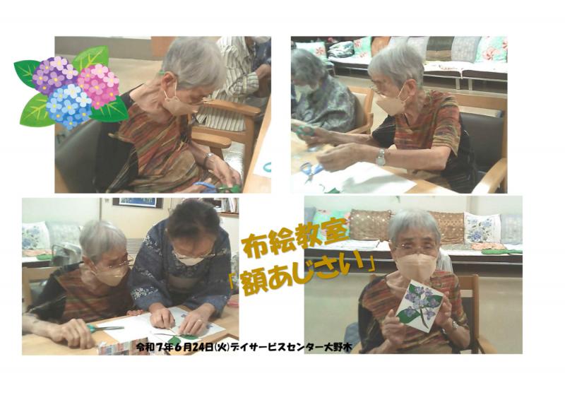 デイサービスセンター大野木 布絵教室「額アジサイ」ご家族様へのお便り