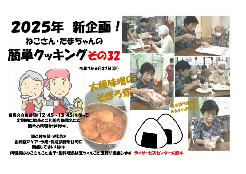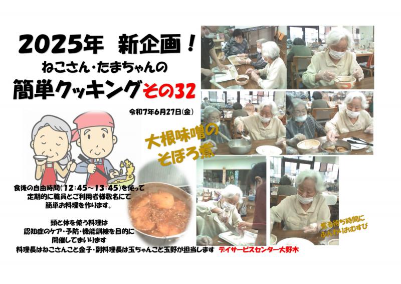 デイサービスセンター大野木 簡単クッキング32ご家族様へのお便り