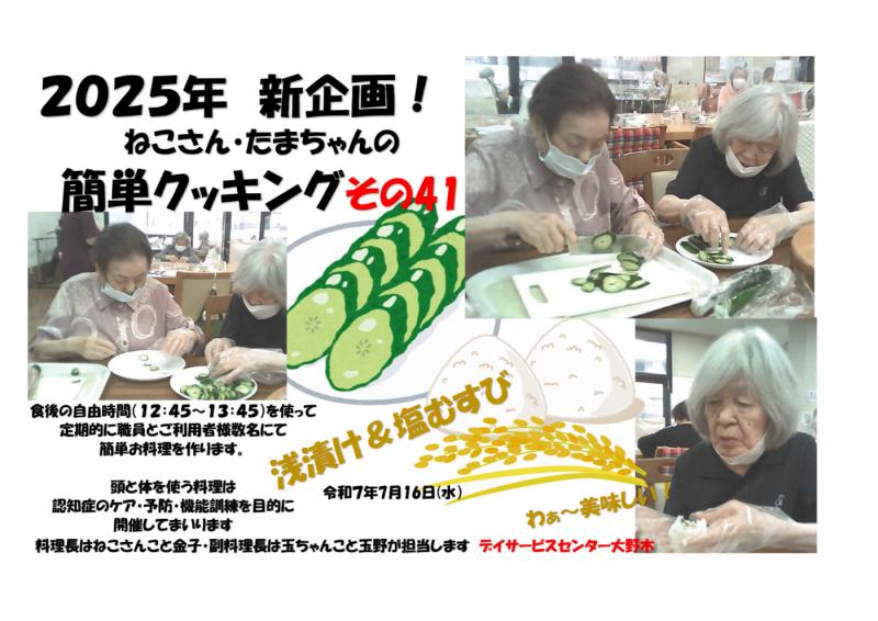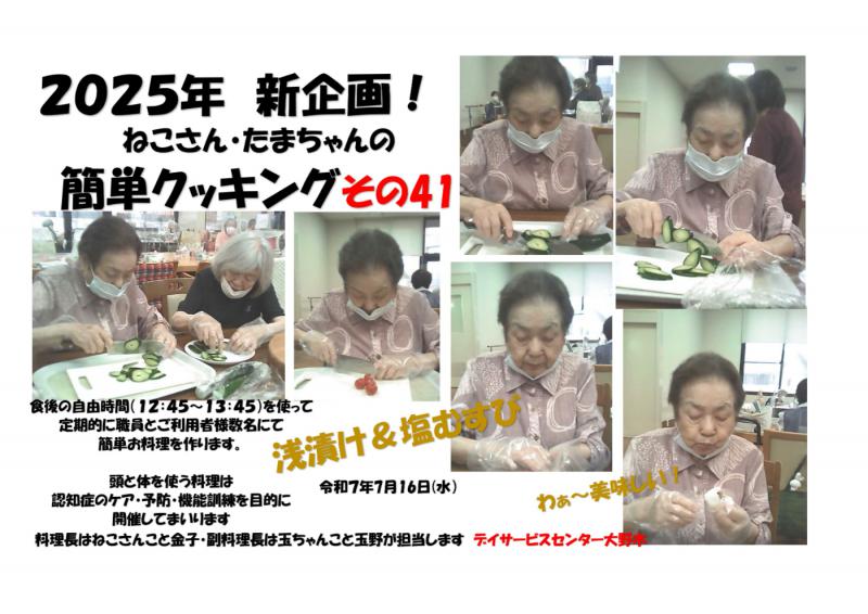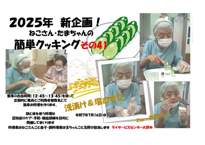 デイサービスセンター大野木 簡単クッキング41ご家族様へのお便り