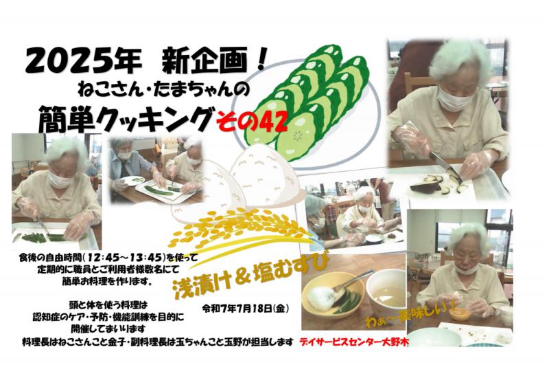デイサービスセンター大野木 クッキング42浅漬け&おむすび