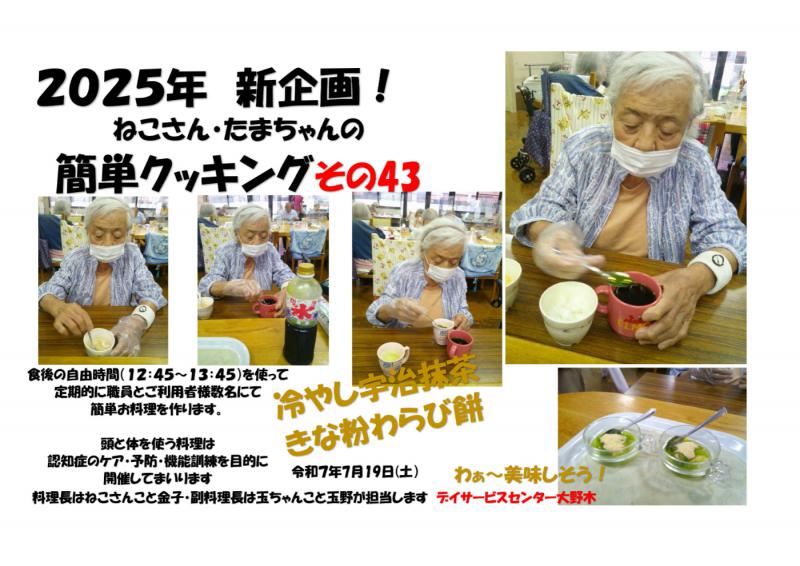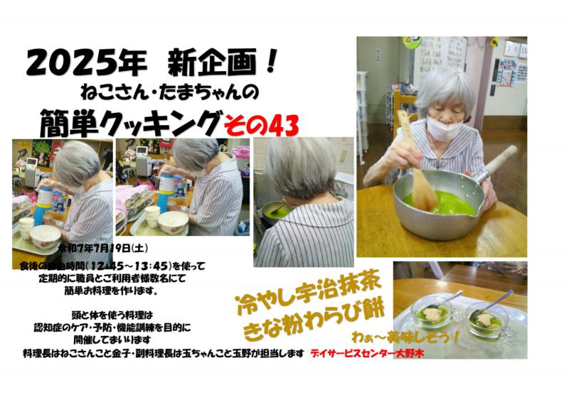 デイサービスセンター大野木 クック43宇治抹茶きな粉わらび餅が美味しい!