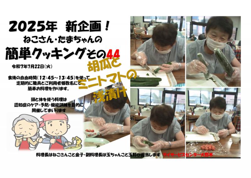 デイサービスセンター大野木 クッキング44胡瓜とミニトマトの浅漬け