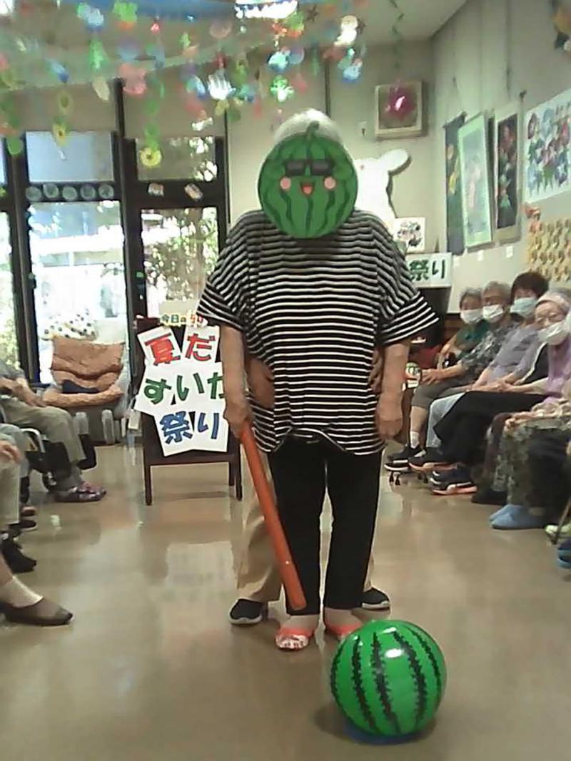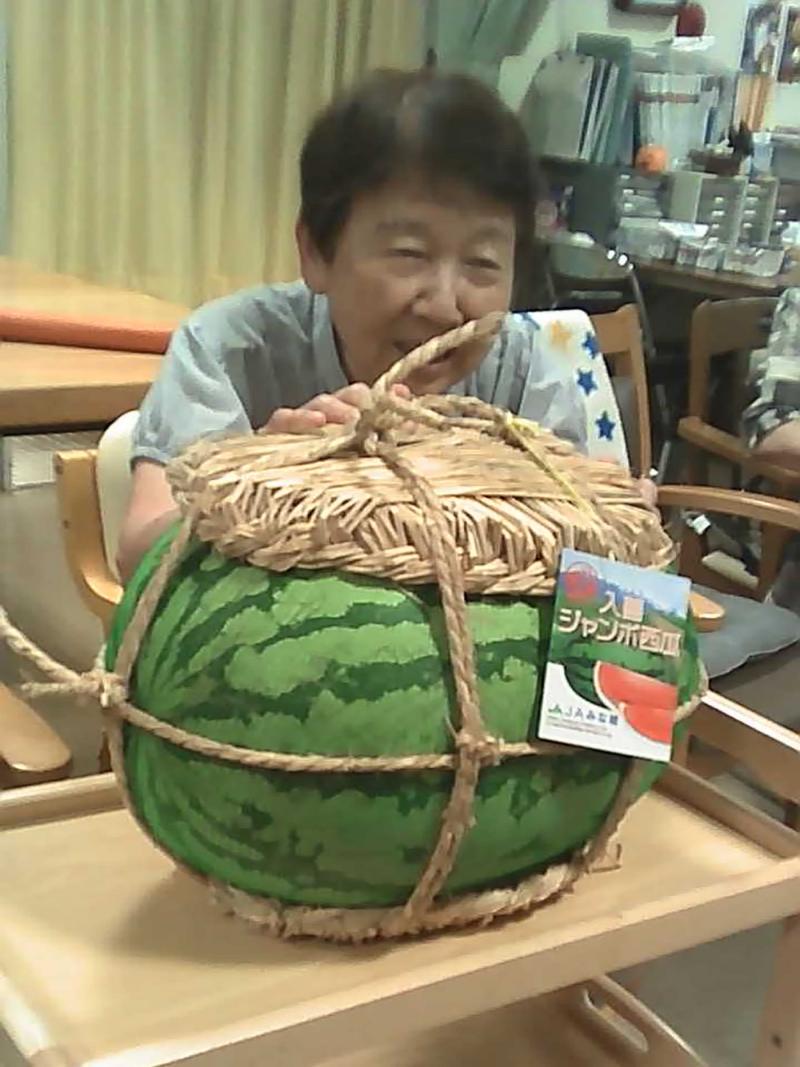 昨日、夏だ!すいか祭りを開催しました。西瓜割りを体験し、ジャンボ西瓜をカットして満足いくまで召し上がっていただきました。甘くて美味しい西瓜にご利用者様は大満足のご様子でした。