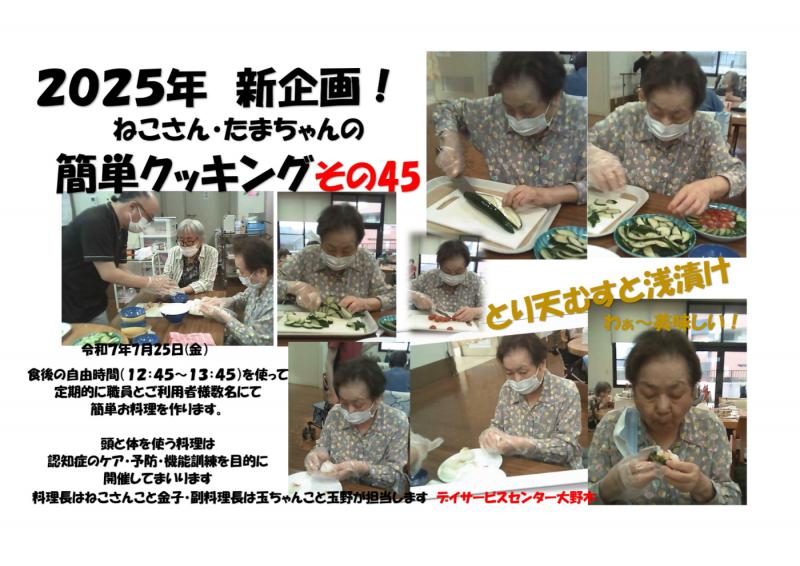 デイサービスセンター大野木 クッキング45とり天むすと浅漬け