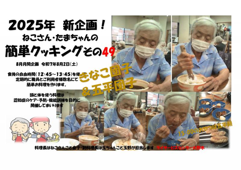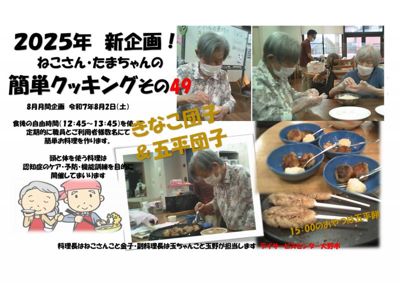 デイサービスセンター大野木 8月月間企画 クッキング49きな粉&五平だんご