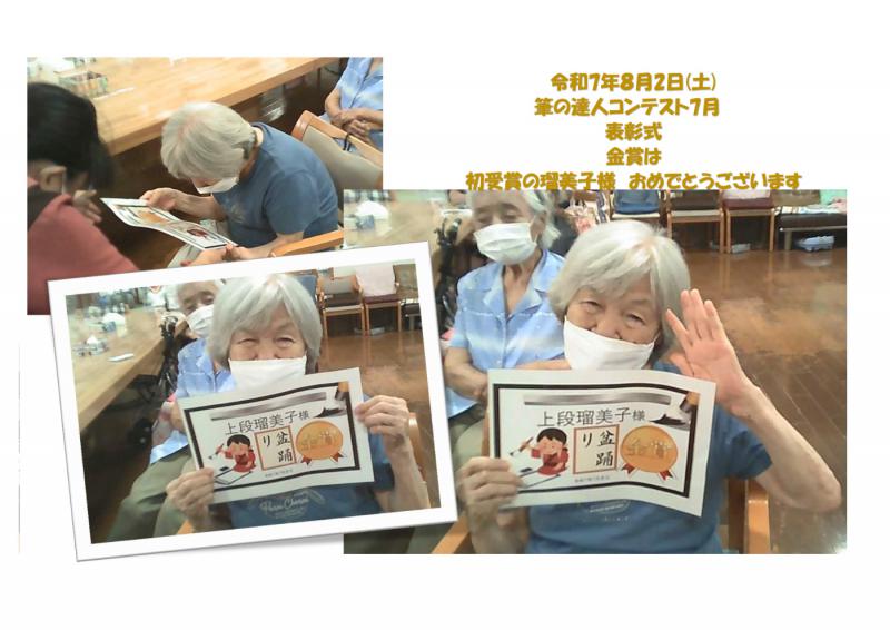 デイサービスセンター大野木 筆の達人コンテスト7月 初優勝の瑠美子様