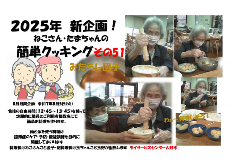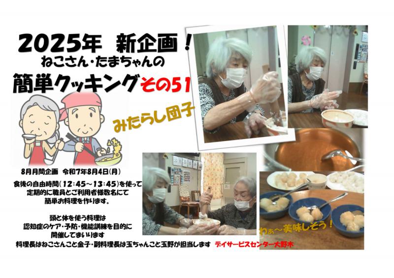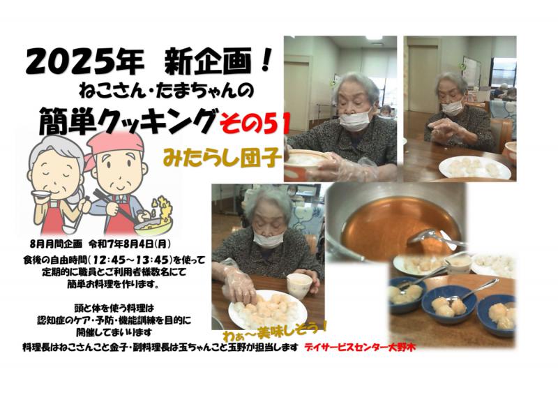 デイサービスセンター大野木 8月月間企画のクッキング51「みたらし団子」