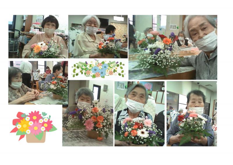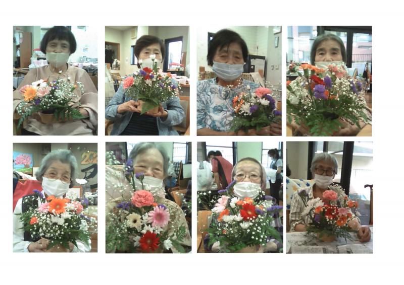 デイサービスセンター大野木 紫雲殿様によるアレンジメントフラワーに感激!