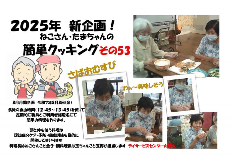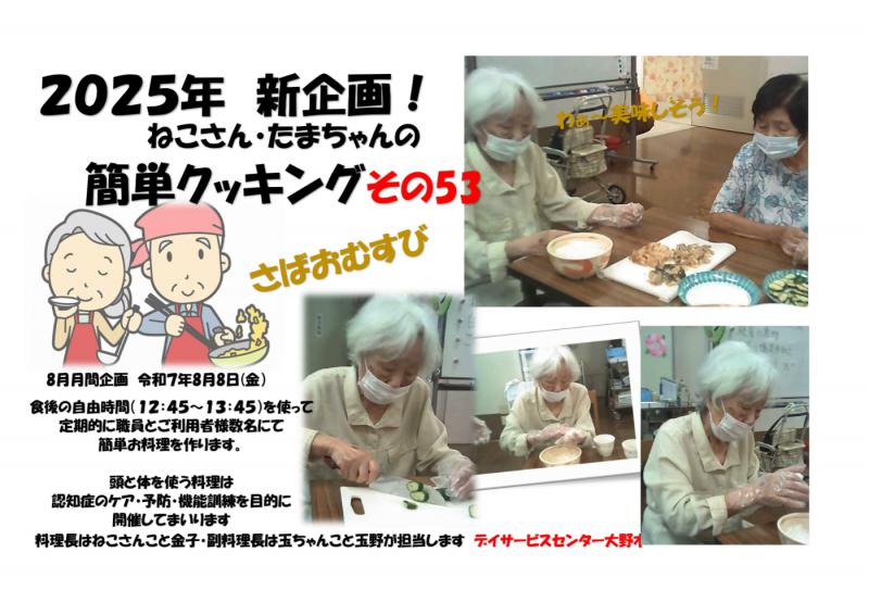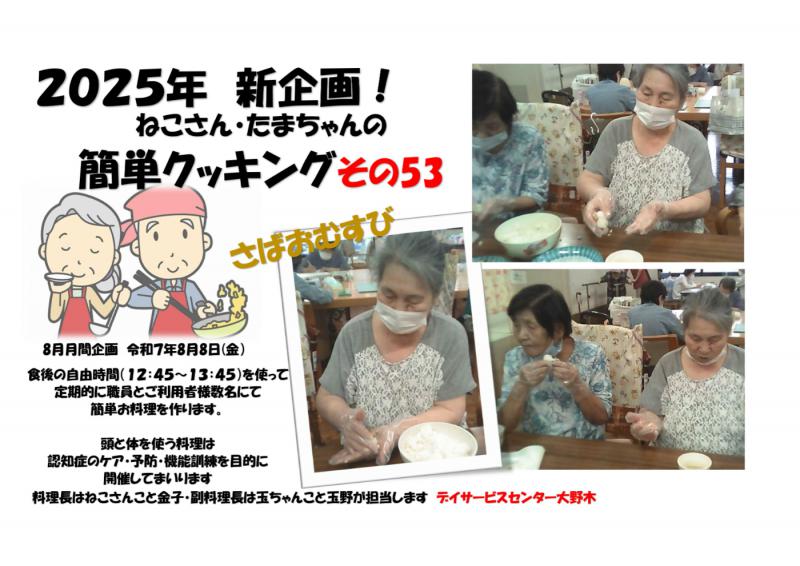 デイサービスセンター大野木 8月月間企画 クッキング53さばおむすび