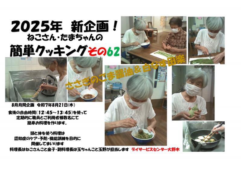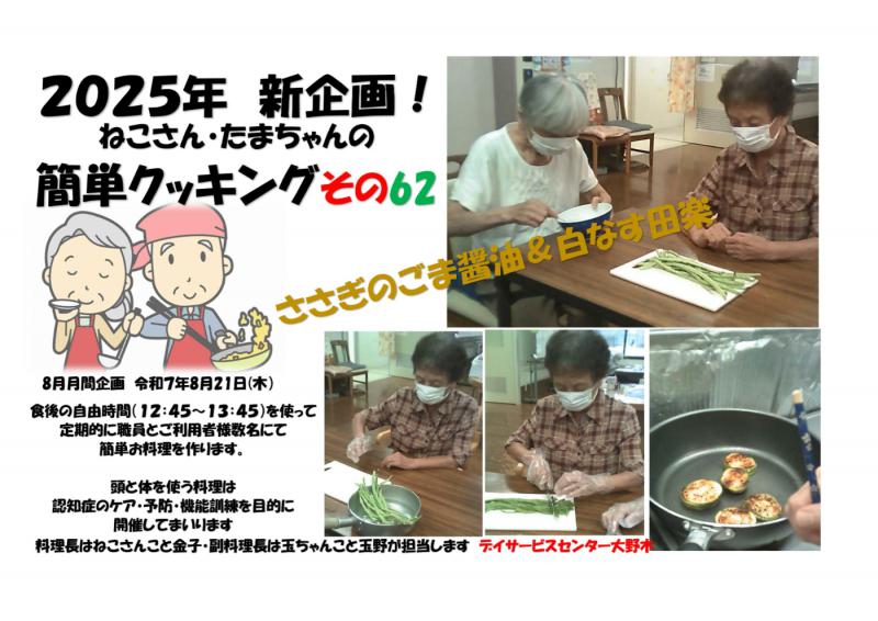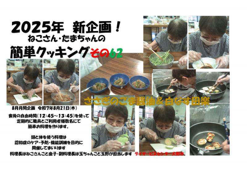 小林様よりクッキングで作って・・・ささぎをいただきましたので、ごま醤油和えを作りました。以前に小林様より白なすの苗をいただき実りましたので白なす味噌田楽を作りいただきました。美味しいと大好評でした!