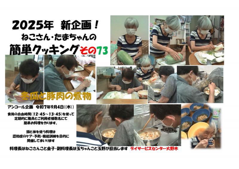 デイサービスセンター大野木 クッキング73冬瓜と豚肉の煮物