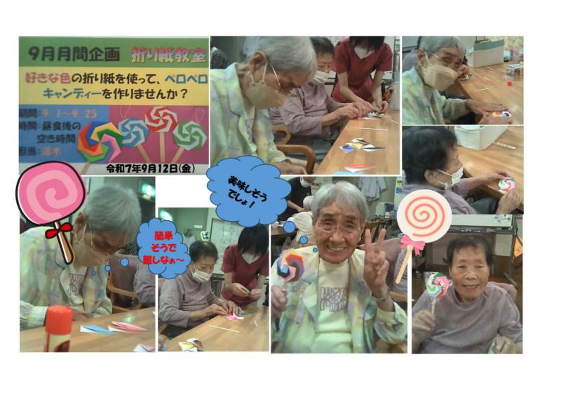 デイサービスセンター大野木 折り紙でペロペロキャンディー