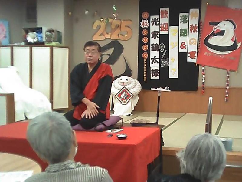 一足早く9/22(月)に光家鶴太さんをお招きし、落語&マジックショーを楽しみました。皆様、大笑いで楽しまれました。