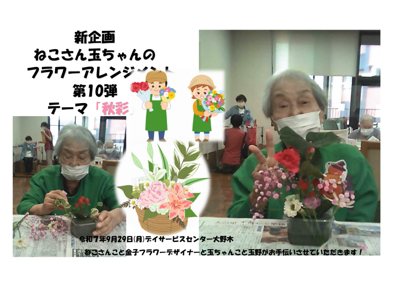 デイサービスセンター大野木 ねこさん玉ちゃんのミニアレンジフラワー10