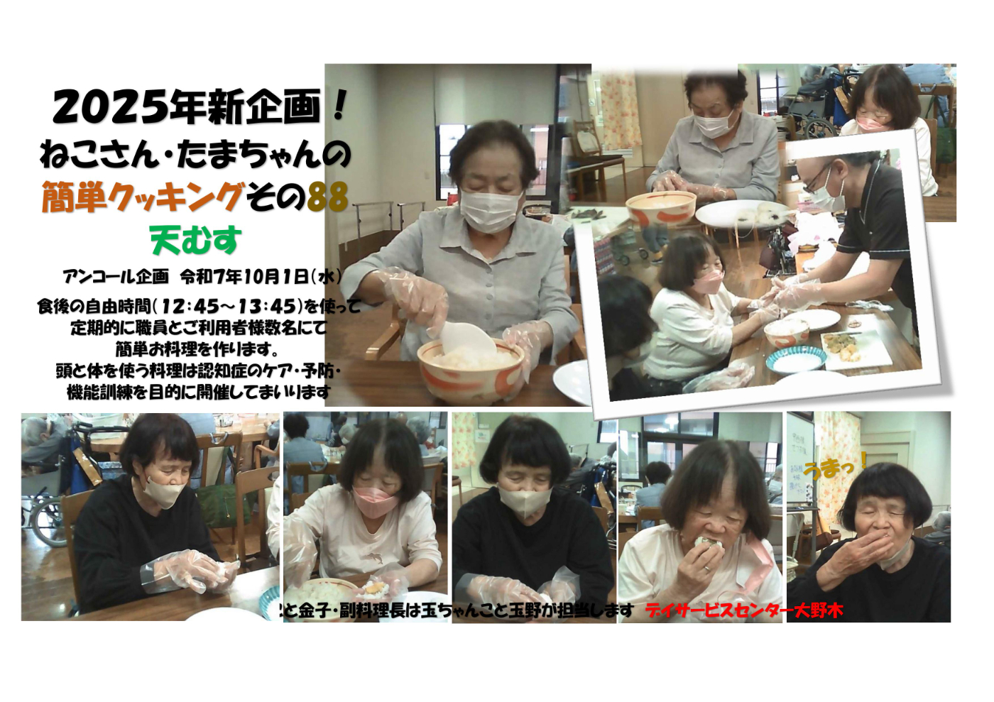 デイサービスセンター大野木 ねこさん玉ちゃんのクッキング88天むす