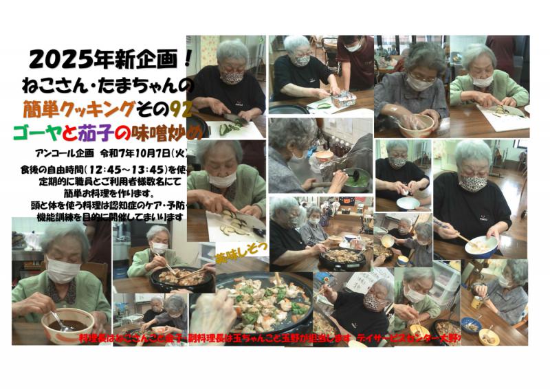大野木ファーム庭にてゴーヤと茄子が収穫出来ましたので、ご利用者様のご希望に応えて簡単クッキングで料理いたしました。美味しいと大好評でした。何か収穫できるのが楽しみです!