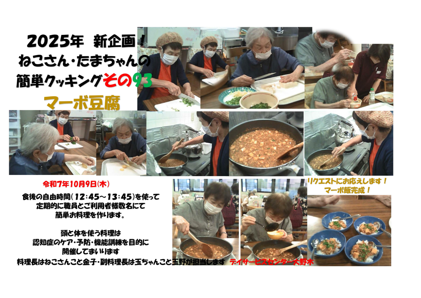 デイサービスセンター大野木 できることはお応えいたします!麻婆豆腐