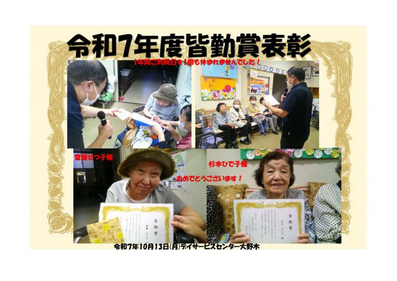 デイサービスセンター大野木 皆勤賞おめでとうございます!