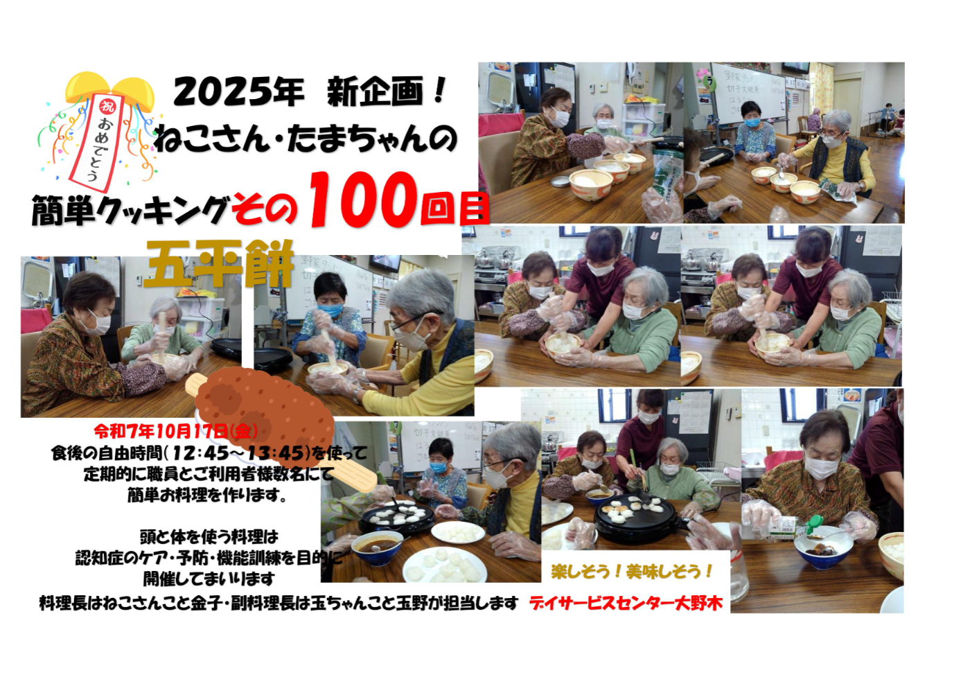 デイサービスセンター大野木 ㊗クッキング100回目は五平餅に大満足!