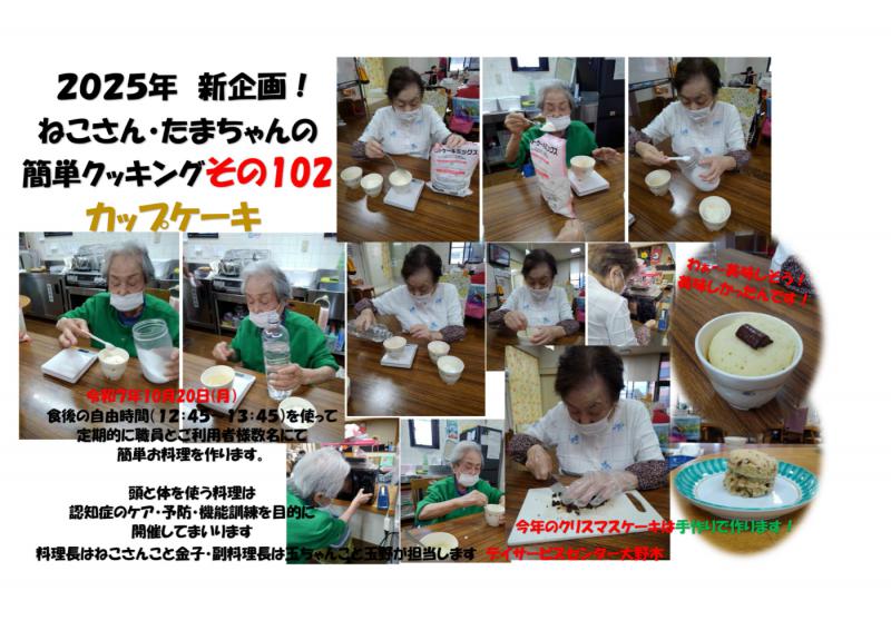 今年のクリスマスケーキは、日頃 簡単クッキングでご利用者様の笑顔も多数見られることも考慮の上、クリスマスケーキをデイサービスで皆様と作ろうと計画しております。その下地のスポンジ作りの試作です!クリスマス当日のお楽しみです!