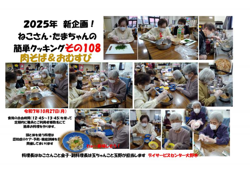 デイサービスセンター大野木 簡単クッキング108肉そば&おむすび