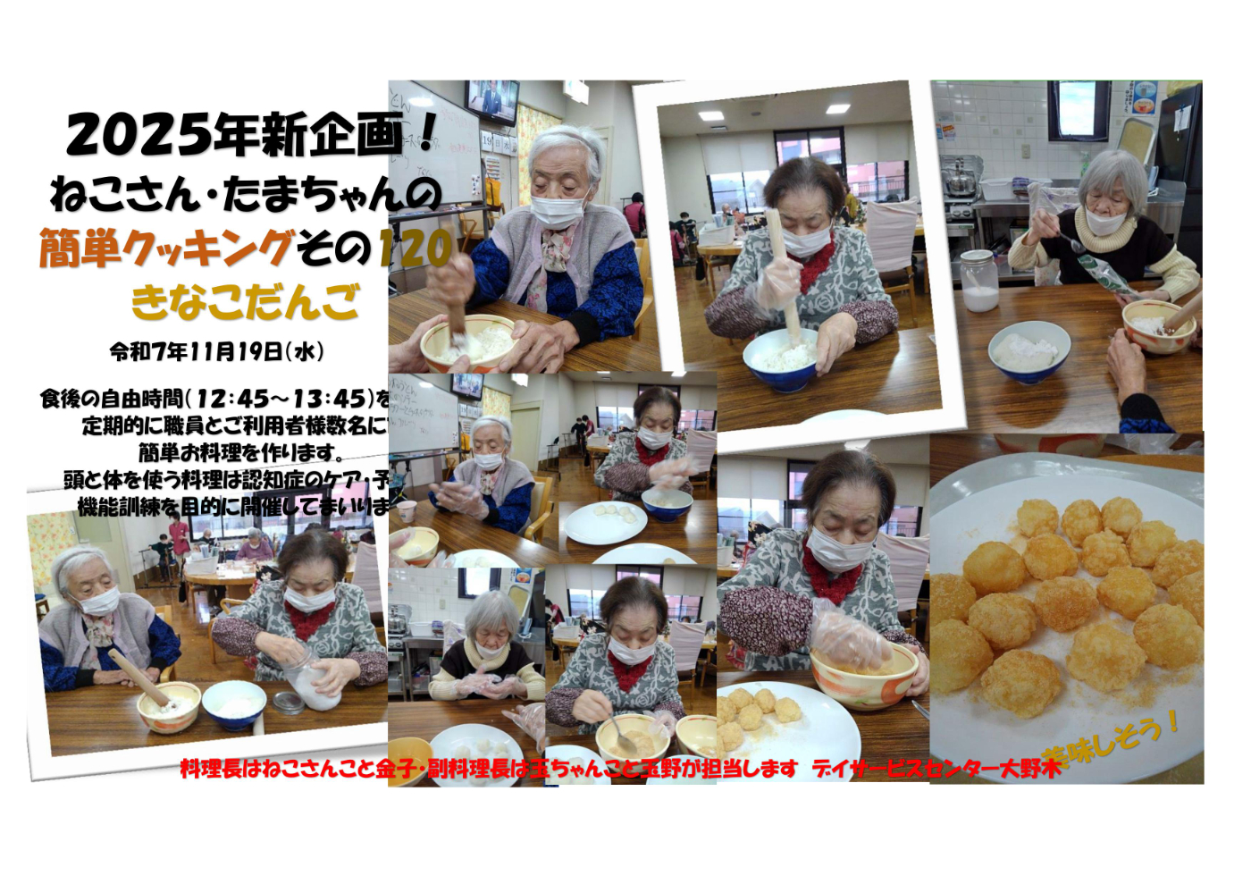 デイサービスセンター大野木 美味しいからきな粉団子作りたい!