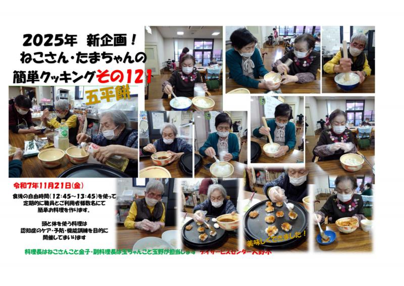デイサービスセンター大野木 ねこさん玉ちゃんの簡単クッキング「五平餅」