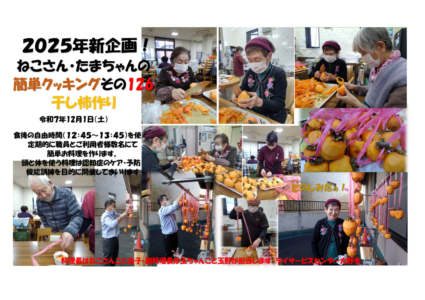 デイサービスセンター大野木 簡単クッキング126干し柿作り