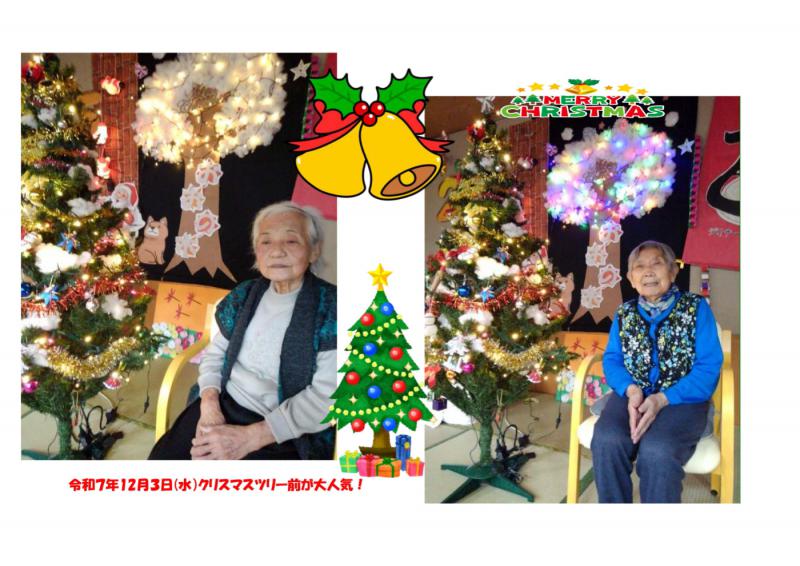デイサービスセンター大野木 ツリー前で「ハイチーズ!」