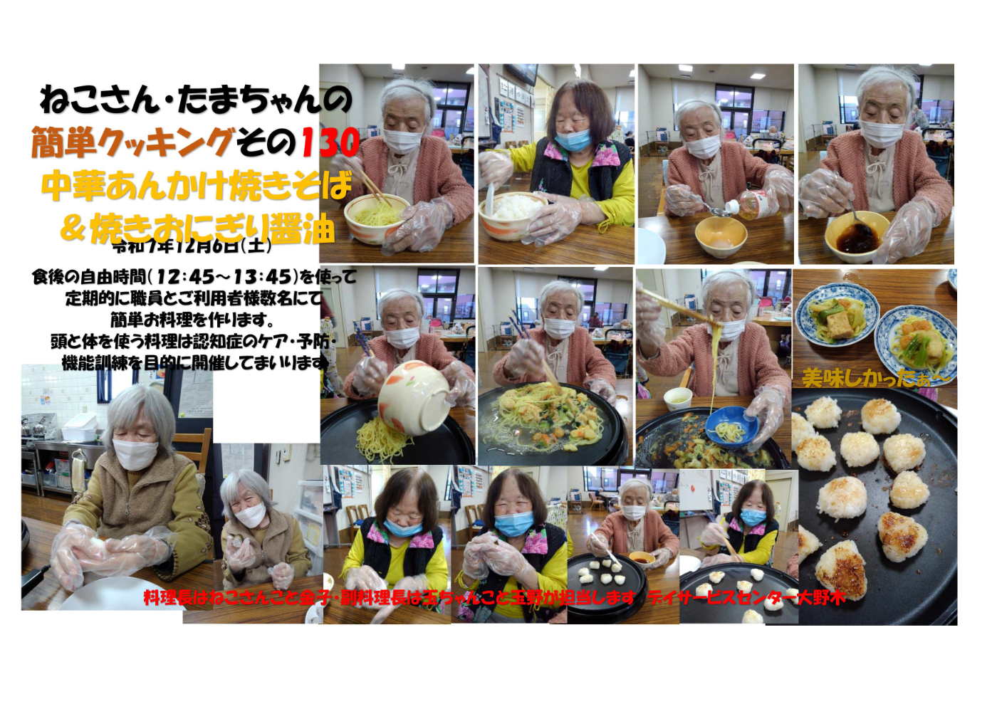 デイサービスセンター大野木 中華風あんかけそば&焼きおにぎり甘醤油味
