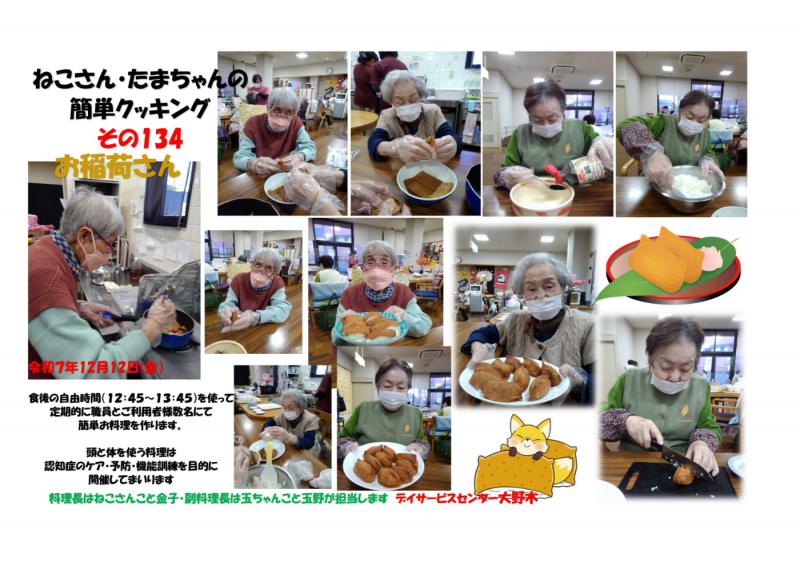 デイサービスセンター大野木 クッキング134おいなりさん