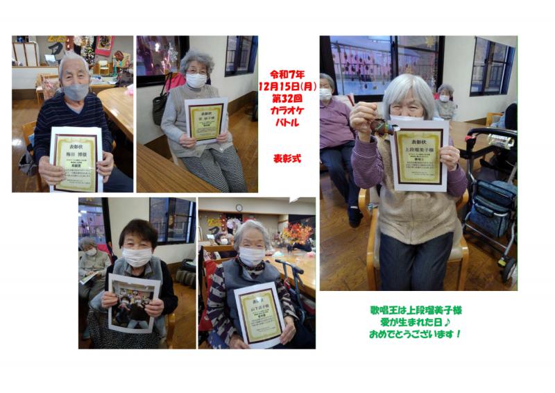 デイサービスセンター大野木 第32回カラオケバトル表彰式 歌唱王は瑠美子様