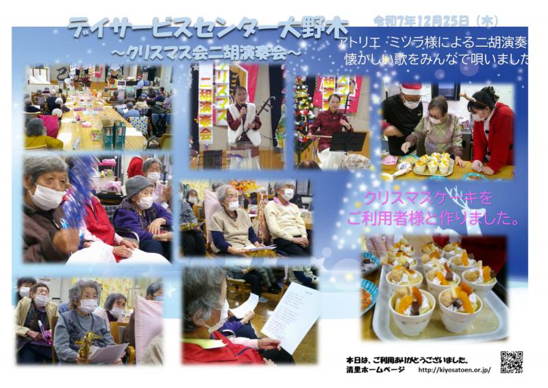 デイサービスセンター大野木 二胡演奏会 ご家族様へのお便り