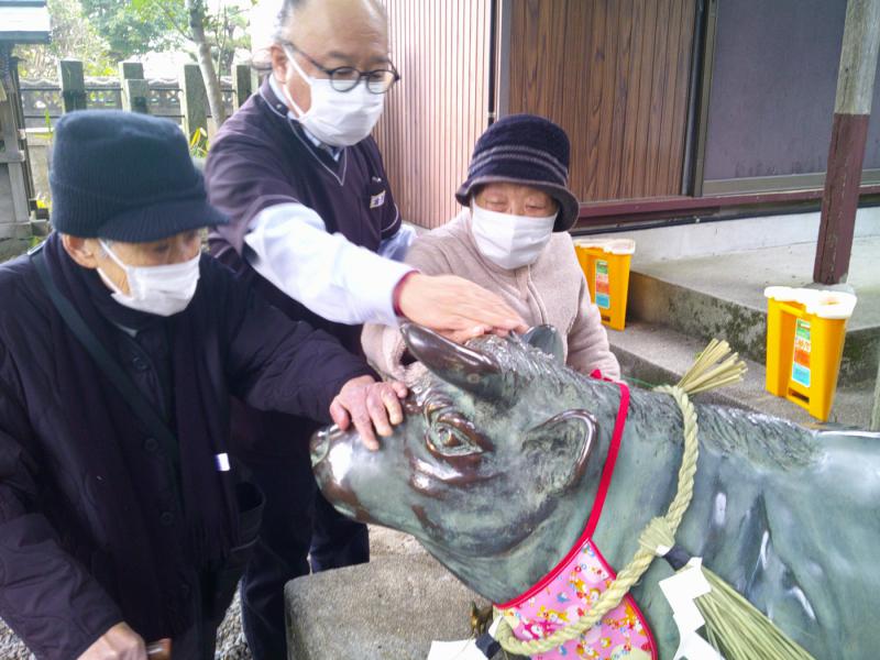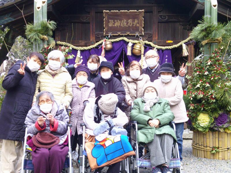 新年あけましておめでとうございます。大乃伎神社へ初詣に行ってまいりました。ご利用者様も願いを込めて参拝され喜ばれました!今週いっぱいご利用者様を順にお連れいたします。