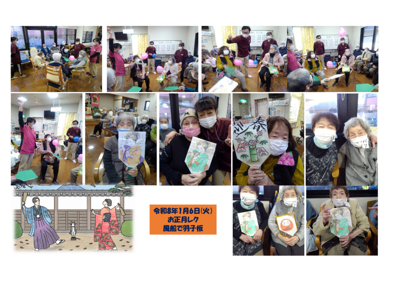 デイサービスセンター大野木 お正月レク 風船で羽子板