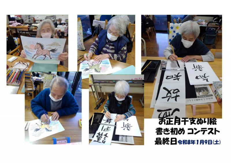 デイサービスセンター大野木 書き初め&干支ぬり絵最終日