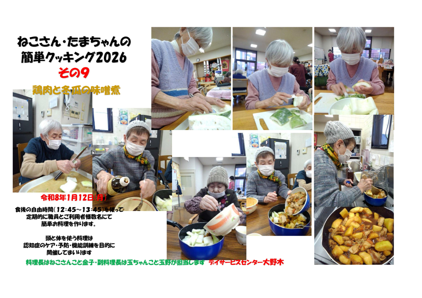 デイサービスセンター大野木 鶏肉と冬瓜の味噌煮~クッキング9