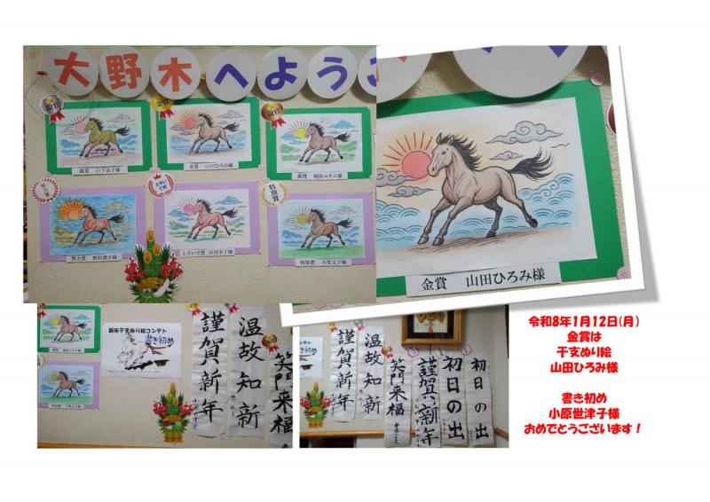 デイサービスセンター大野木 新年干支ぬり絵&書き初めコンテスト展示
