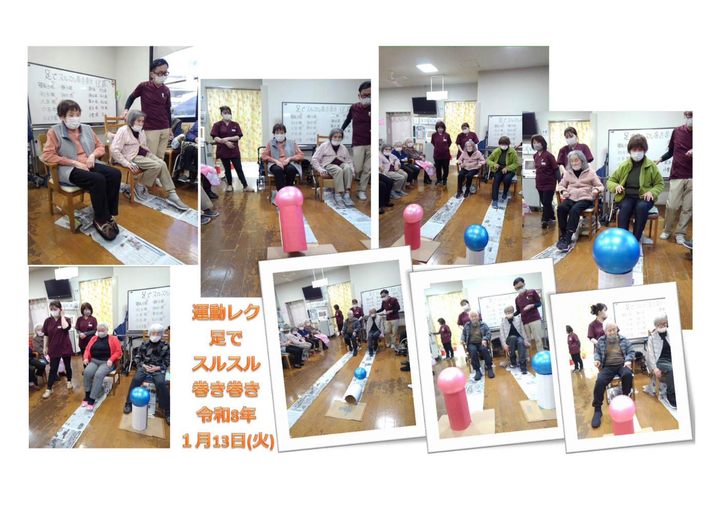 デイサービスセンター大野木 運動レク~足でスルスル巻き巻き