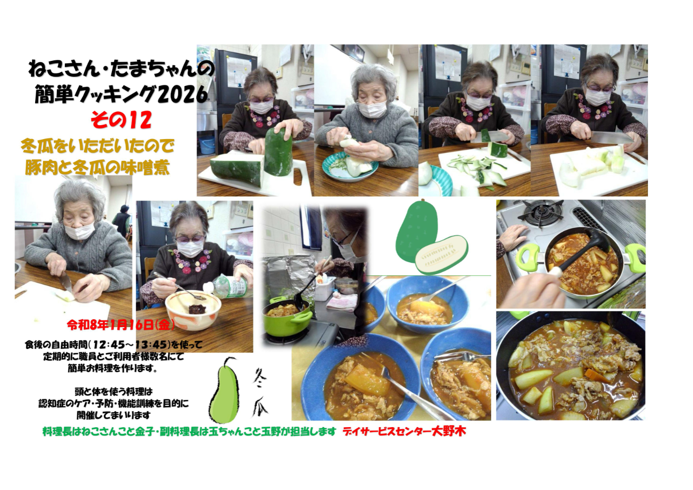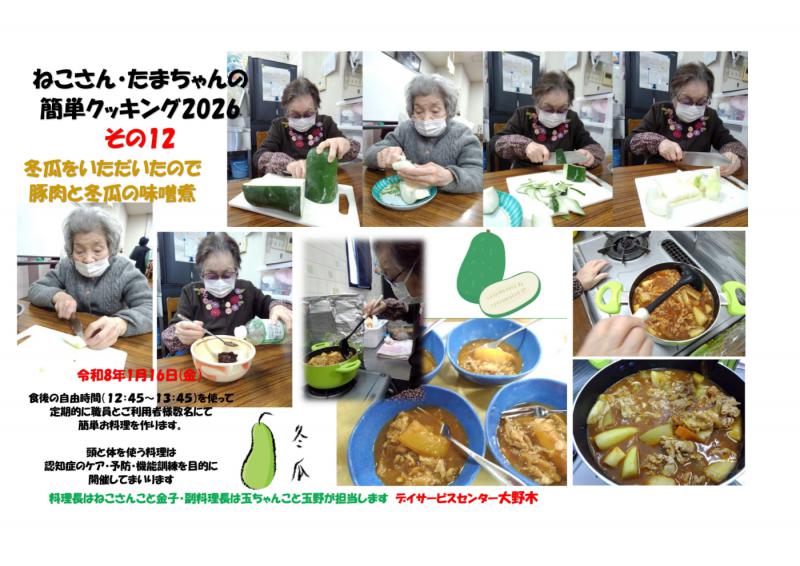 デイサービスセンター大野木 豚肉と冬瓜の味噌煮~クッキング12
