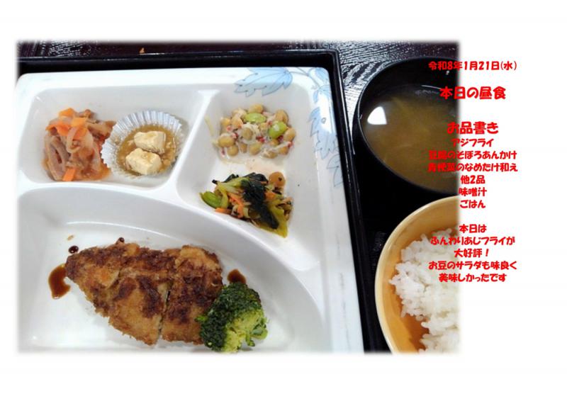 デイサービスセンター大野木 1/20昼食は全員完食!大人気のアジフライ