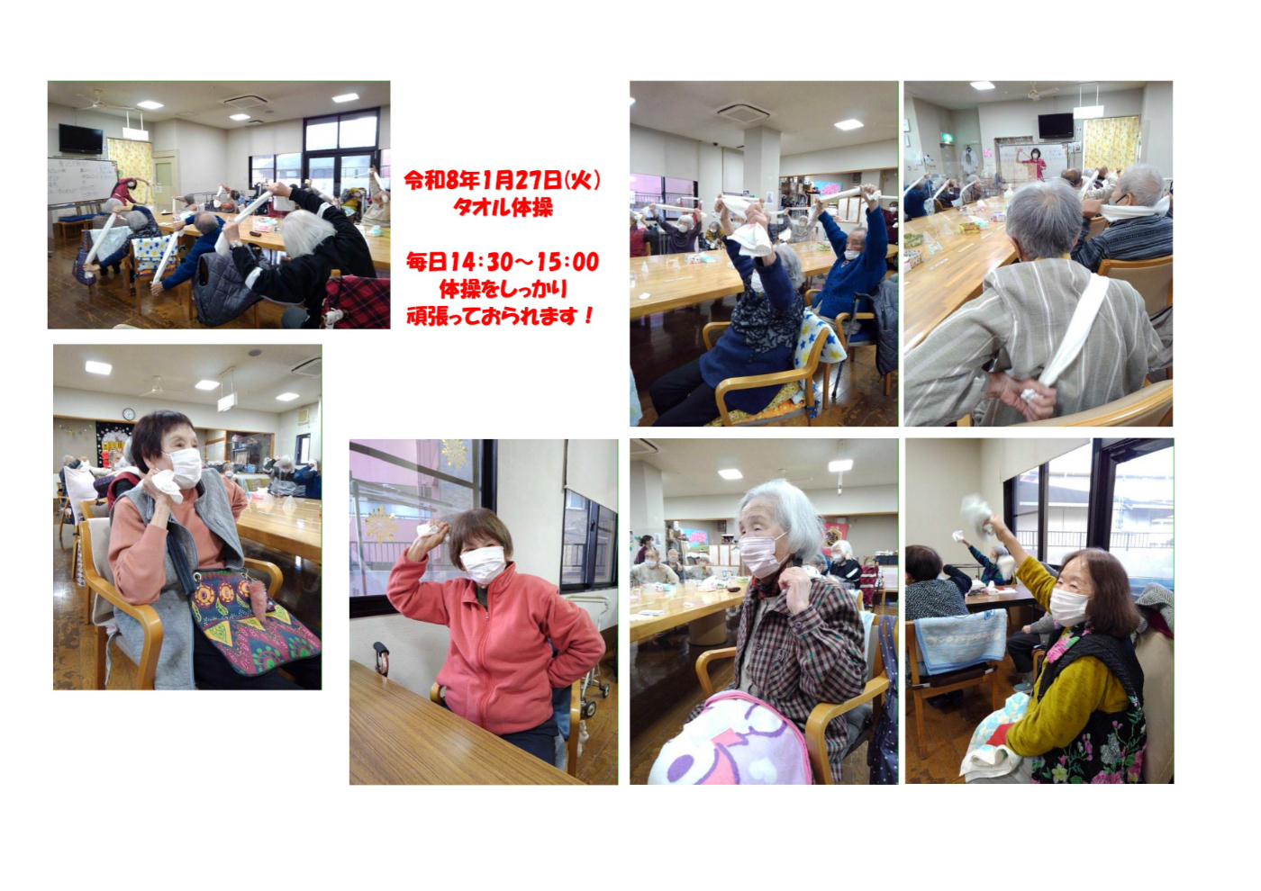 デイサービスセンター大野木 タオル体操で手足をしっかりと