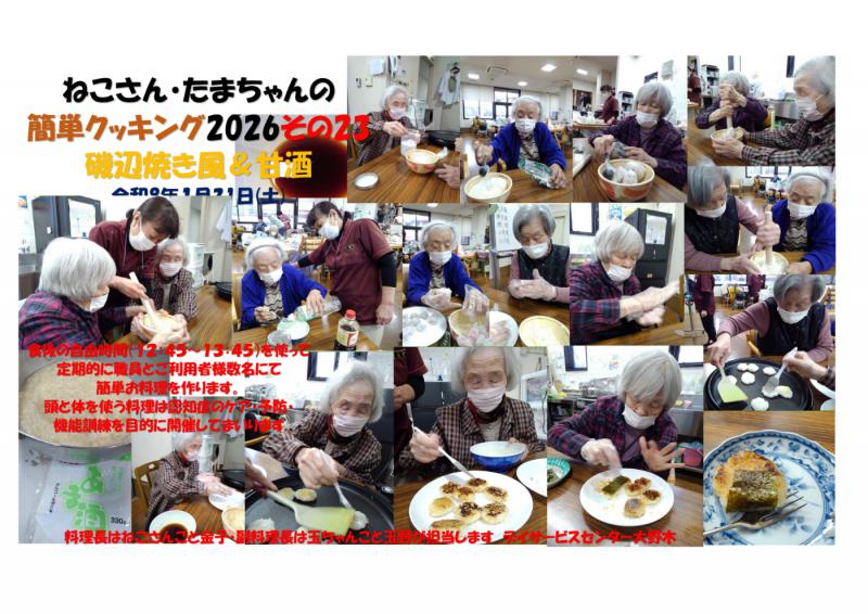 デイサービスセンター大野木 ねこさん玉ちゃんクッキングで磯辺焼き風