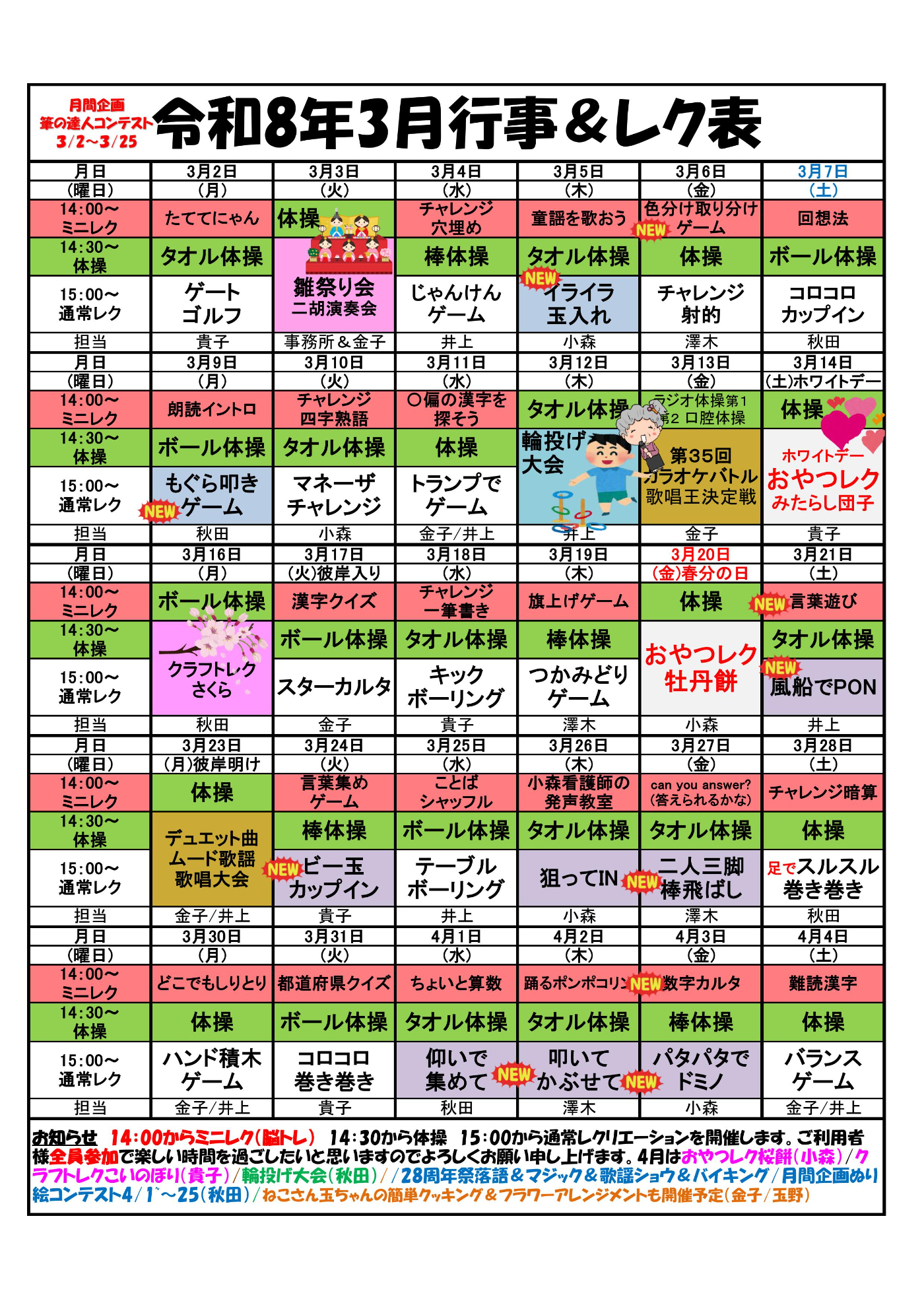 デイサービスセンター大野木 3月も行事やレクリエーション楽しみましょう!