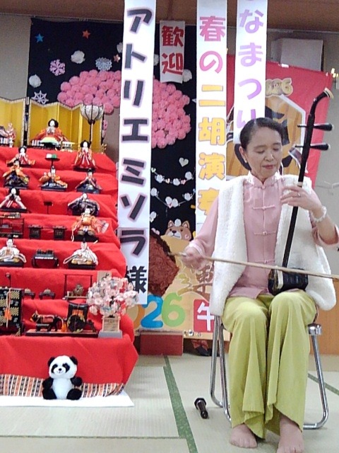 3/3はひなまつり!ボランティアの小野様による二胡の演奏会を楽しみました。綺麗な音色に酔いしれ皆様感激されました。最後の質問コーナーで二胡に触れさせて欲しいの要望に応えてくださり、手にもって体感されました。