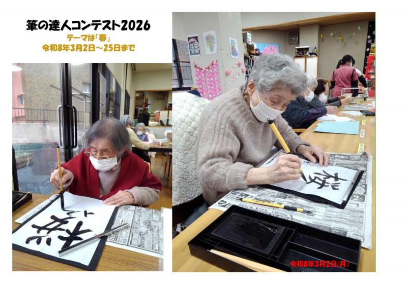 デイサービスセンター大野木 3月は筆の達人コンテスト「春」始まる!