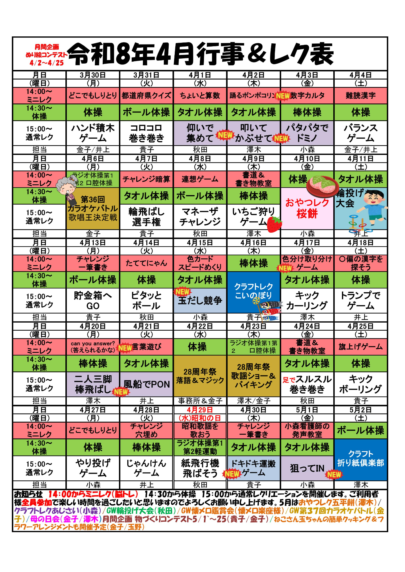 午後からはあっという間に過ぎてしまうほど、充実しております。機能訓練や体操、運動、脳トレ、音読と目白押しです。