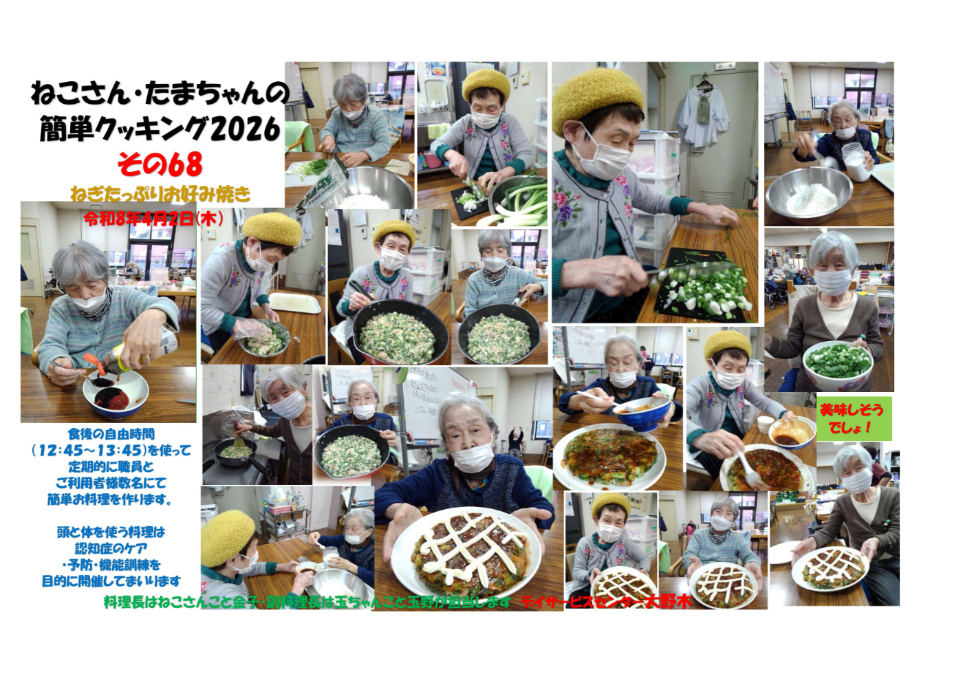 デイサービスセンター大野木 好評のクッキングでねぎ焼き