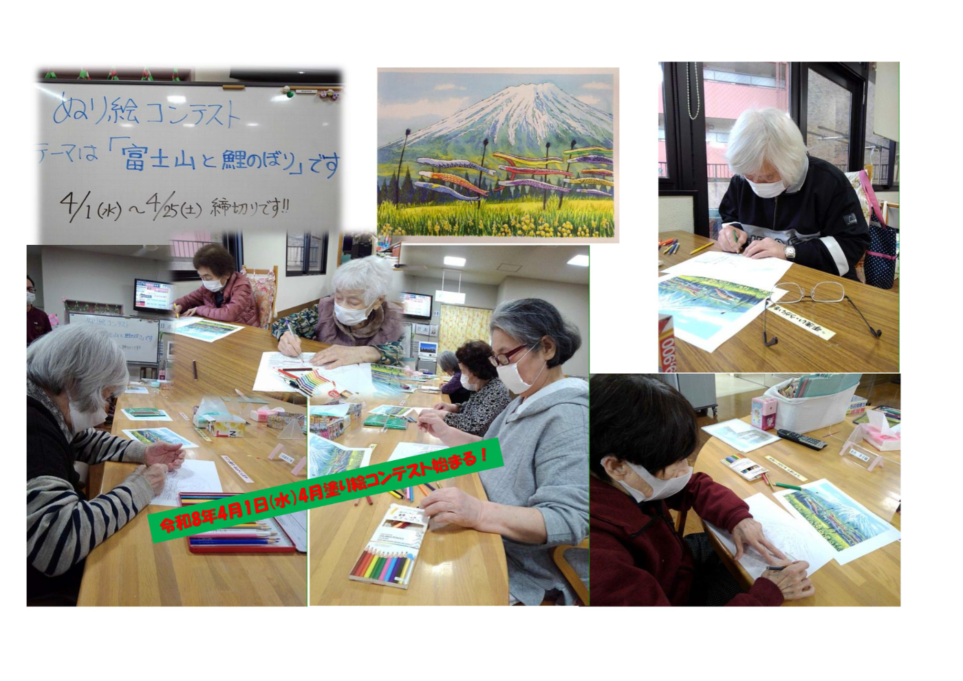 デイサービスセンター大野木 4月月間企画 ぬり絵コンテストこいのぼり始まる
