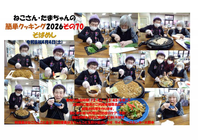 デイサービスセンター大野木 クッキングの「そばめし」が大好評